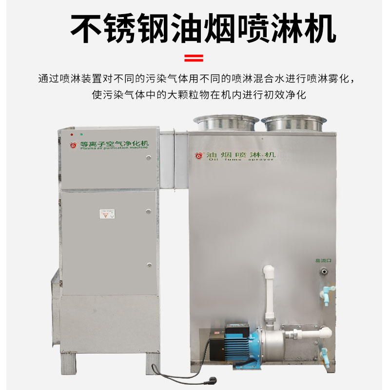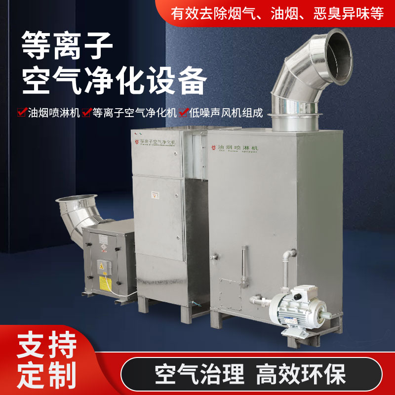 等離子空氣凈化設備主要由油煙噴淋機、等離子空氣凈化機、低噪聲風機等三大部分組成,均采用不銹鋼材質。